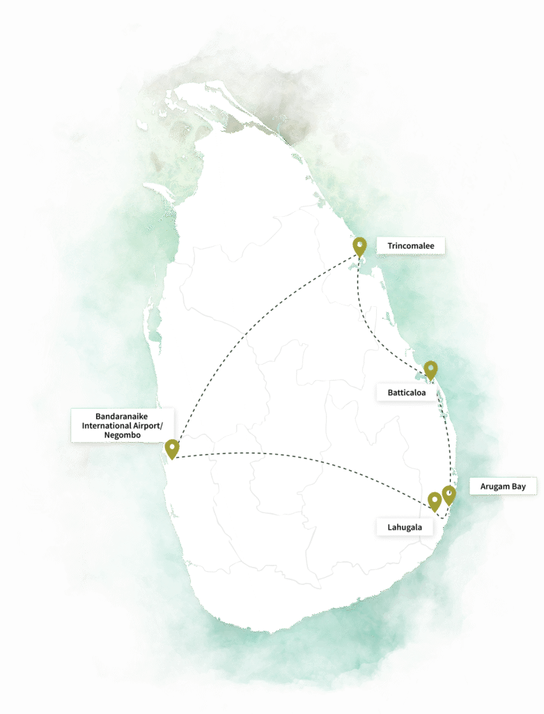 A sun-drenched journey along Sri Lanka’s east coast where golden beaches, colonial echoes, and ancient Tamil traditions intertwine. From coral islands to sacred shrines, this tour unveils the region’s soul — raw, resilient, and rhythmically coastal.